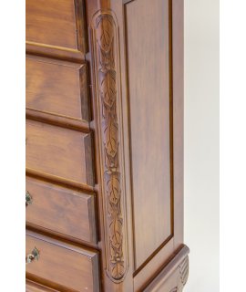 Zdobiony rzeźbionymi ornamentami o motywach roślinnych.