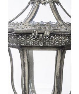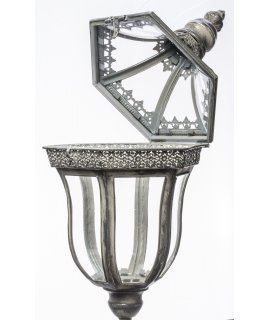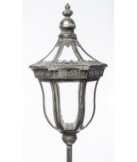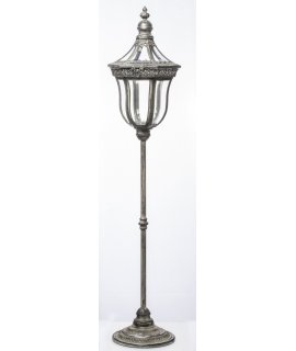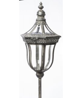 Stylowy lampion metalowo-szklany na długiej nodze.