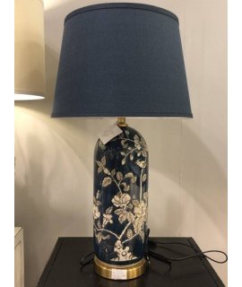 oraz stylowym, z granatowym abażurem.