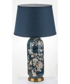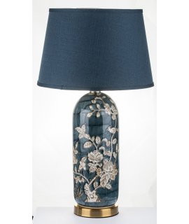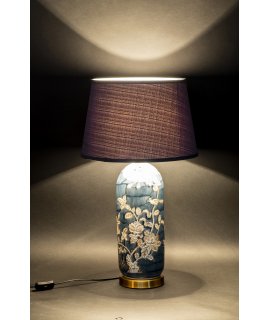 Wyjątkowa, stołowa lampa ceramiczna z pięknie udekorowaną podstawą