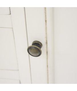 Drzwiczki i szuflady wykończone stylowymi uchwytami metalowymi.