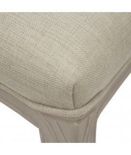 Miękkie siedzisko pokryte jest tkaniną w kolorze beżowym.