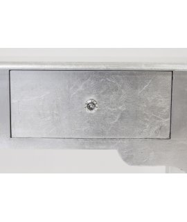 Wyposażony w dwie szuflady wykończone uchwytami stylizowanymi na kryształy.