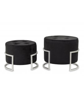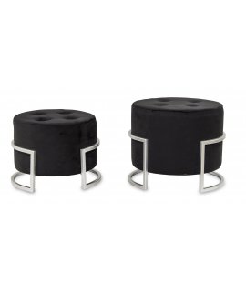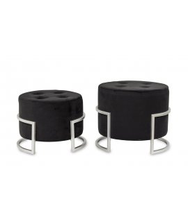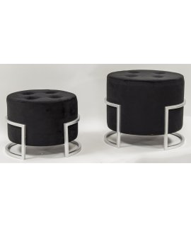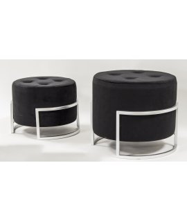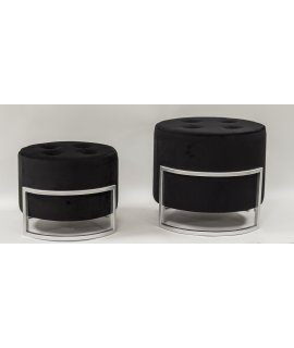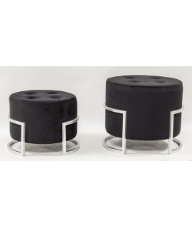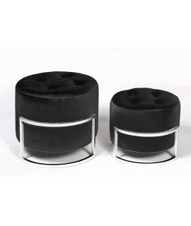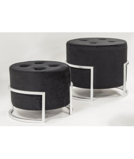 Komplet dwóch puf z welurowym siedziskiem w kolorze czarnym,
